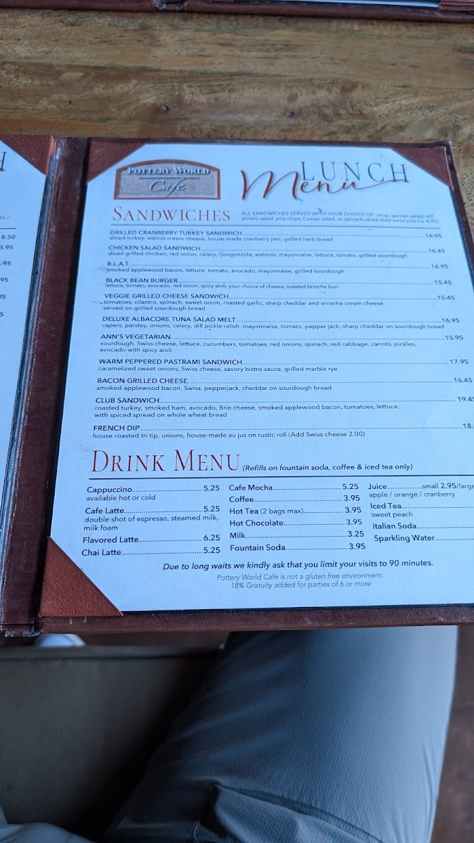 Reviews highlight the portion sizes and the cafe's warm atmosphere, perfect for brunch or a cozy dinner. While some experiences may vary, the inviting vibe and excellent service keep customers returning for more culinary bliss. Visiting Pottery World Cafe feels like a home away from home, nourished by both soul-satisfying food and heartwarming ambiance.